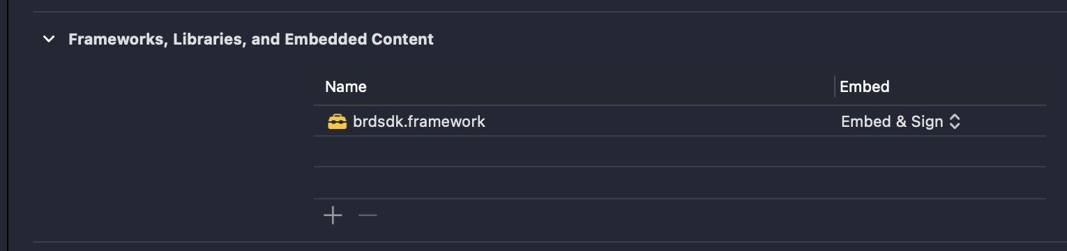 - In tab Signing & Capabilities add App Group entitlement with value com.brdsdk.shared.