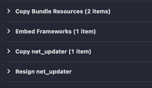 And add a run-script build phase after copying net_updater in the main app's target, e.g. Resign net_updater
