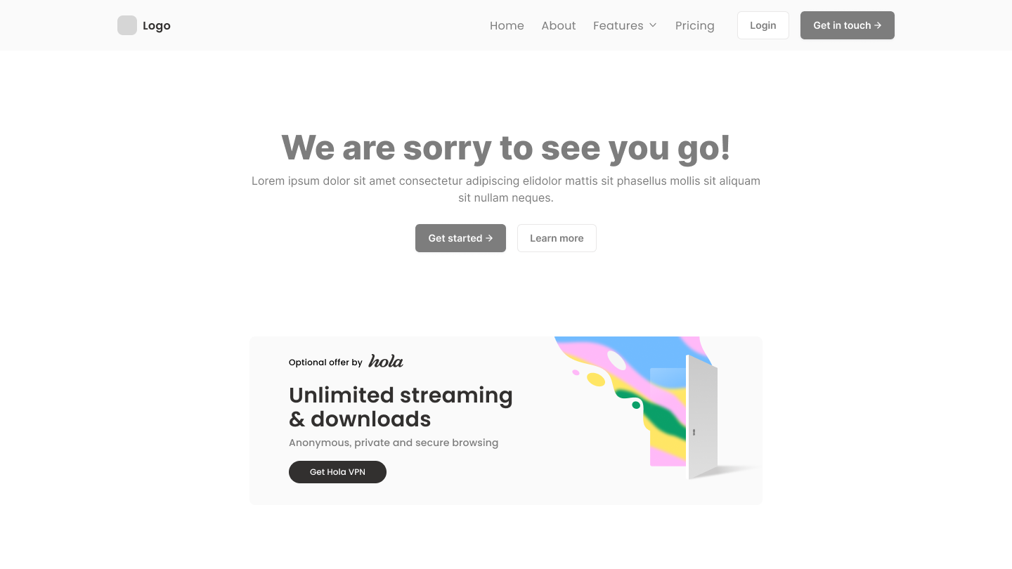 Earn revenue from users who choose to uninstall your product by presenting a Hola VPN install offer on your products uninstall page.
