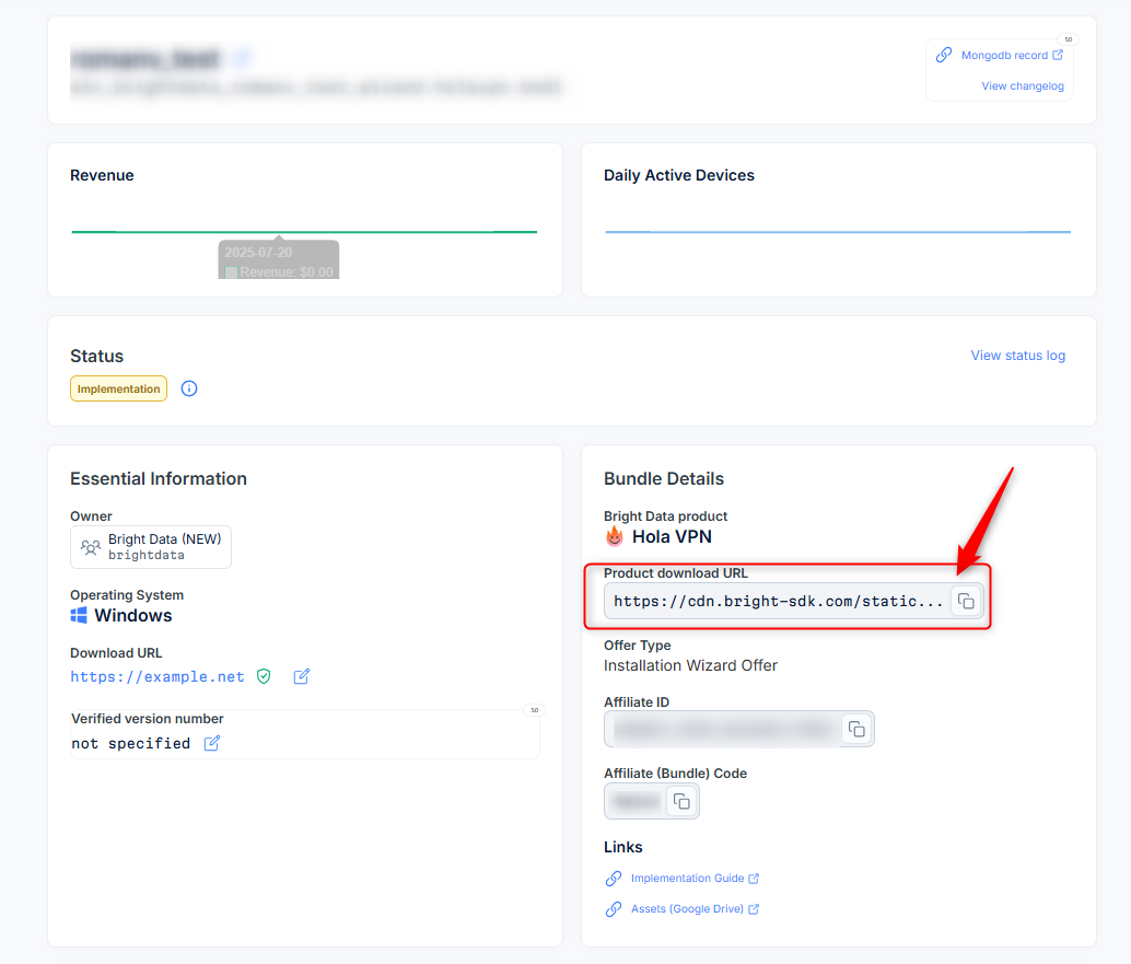 - Get your link and implement onto your offer: On the "Bundles Details" section, make sure Offer Type shows 'In-App Offer' copy download URL to implement onto your offer.