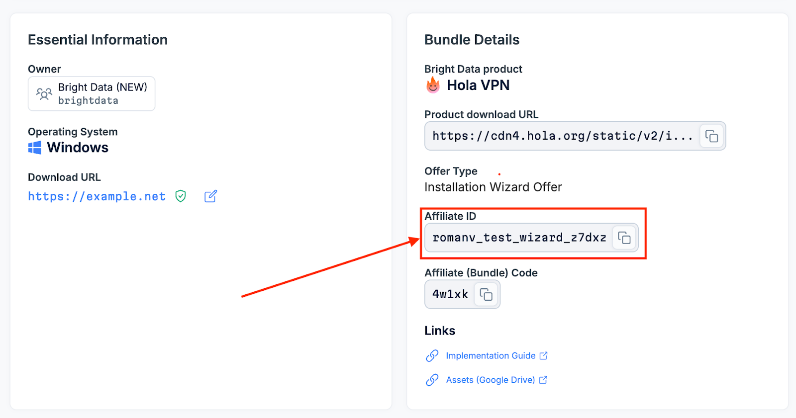 (affiliate id value can be found in your bundles page, each bundle configuration has unique id value)